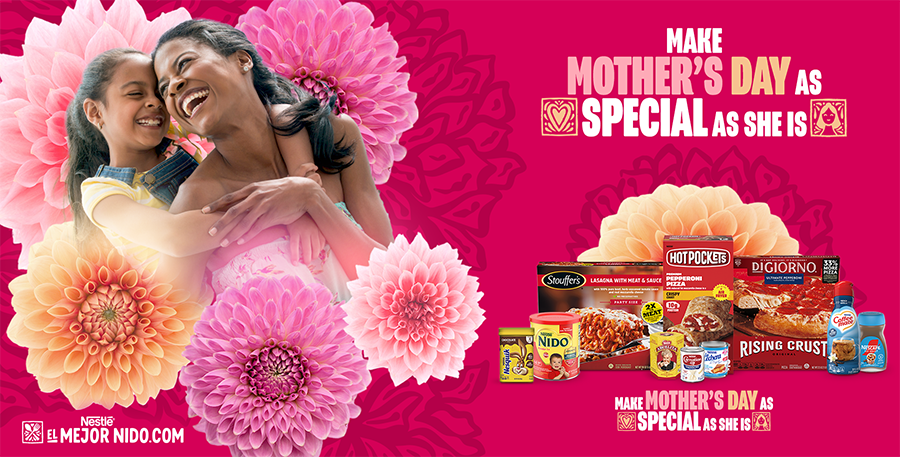 Mother’s Day is an incredibly special time of the year for Hispanic families. Mothers are celebrated as “Queens of the home” with food, singing, and flowers. This El Mejor Nido program from Nestlé is here to help moms with baking products and meal solutions. Tile elements were pulled from their style guide to connect to the El Mejor branding.